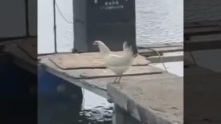 Στην Κίνα, μια κότα κατάφερε να πετάξει για αρκετά δευτερόλεπτα, προσπαθώντας να αποφύγει το νερό μιας λίμνης.