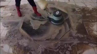 Ο σχολαστικός καθαρισμός μιας ενός πολύ βρώμικου χαλιού. Πιθανό το νερό που ξοδεύτηκε να κόστισε περισσότερο από το ίδιο το χαλί.