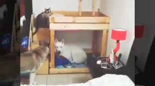Όταν ο ιδιοκτήτης τους φωνάζει ότι είναι ώρα για ύπνο, δύο σκύλοι και μια γάτα μετακινούνται σχολαστικά προς τα κρεβάτια τους.