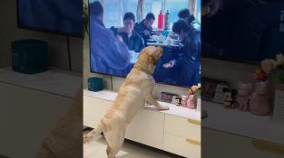 Σκύλος μπερδεύεται μπροστά στην τηλεόραση