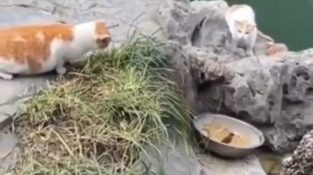 Δίπλα σε μια λίμνη, δύο γάτες παραμονεύουν για να πιάσουν ένα σπουργίτι. Όμως ένας κύκνος έρχεται να τους χαλάσει τα σχέδια.
