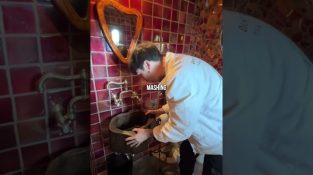 Σερβίρισμα φαγητού με ειδικά εφέ σε ένα εστιατόριο στη Νότια Κορέα.