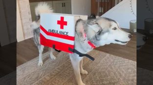 Ένας σκύλος με αποκριάτικο κοστούμι ασθενοφόρου πήρε αρκετά σοβαρά το ρόλο του.