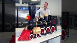 Ο διάσημος ζαχαροπλάστης Amaury Guichon κατασκευάζει ένα τρένο από σοκολάτα.