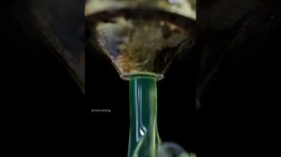 Καταπληκτική μακροπροβολή του ακροφυσίου ενός τρισδιάστατου εκτυπωτή, το οποίο εξωθεί τη λιωμένη ριτήνη για τη δημιουργία στρώσεων.