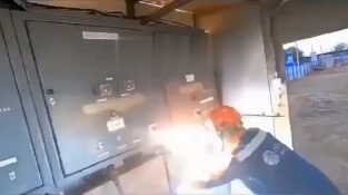 Εργάτες εταιρείας ηλεκτρισμού στη Ρωσία, προκαλούν ένα βραχυκύκλωμα σε ένα σταθμό υψηλής τάσης.