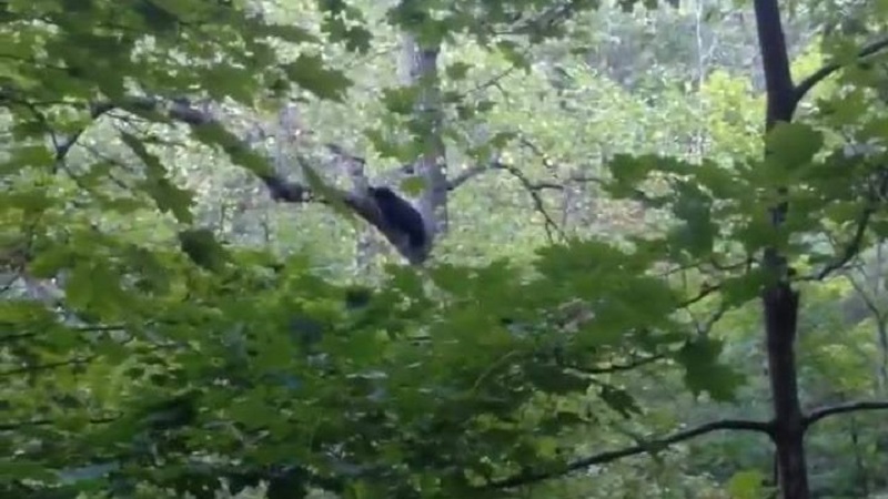 In einem Wald in den Vereinigten Staaten, ein schwarzer Bär bekam Rache von einem Jäger nach der Aufnahme. Jäger beobachtete, wie ein Bär, der Zuflucht in einem Baum nahm.