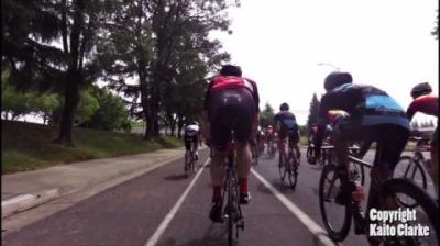 Drone trifft einen Baum Mitte Rennen und stürzt in ein Vorderrad des Fahrers verursacht ihn über den Lenker gehen.