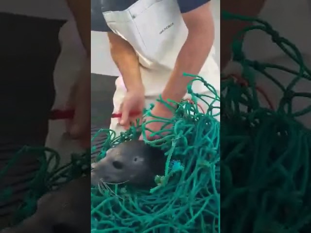 Als sie in der Nähe der Stadt Owls Head fischten, in den Vereinigten Staaten Maine, zwei Fischer erkannte, dass ein junger Seehund wurde in ihre Netze verstrickt. Schnell hob die Netze im Boot und ließ das kleine Säugetier.