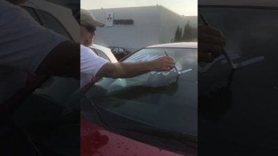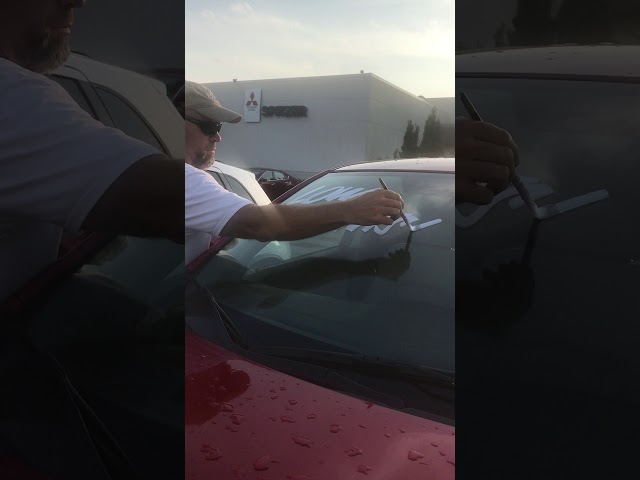 Der Kalligraph John Oliver zieht meisterhaft Preise auf Windschutzscheiben von Autos zum Verkauf.