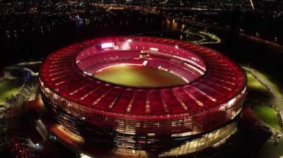Eine Lichtshow mit mehr als 15,000 LEDs am Perth-Stadion in Perth, Australien.