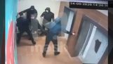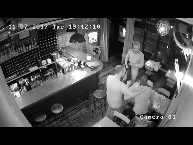 Im Restaurant in der Kamera London Esteban Sicherheit aufgezeichnet eine dramatische Szene, wie ein Dieb öffnet sich plötzlich die Tür und versuchen, den Laptop Direktor des Ladens zu greifen.