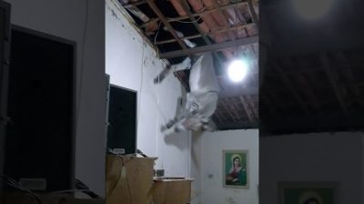 Ein Esel fällt durch das Dach eines Hauses in Cajazeiras Brasilien. Das Tier wanderte in einen Hügel, knapp unter dem Hügel gelegen und wurde auf dem Dach des Hauses gefunden. Der Esel nicht leiden jede Verletzung und ist bei guter Gesundheit.
