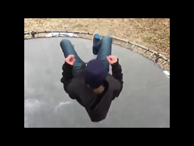 Ein junger Mann in den Vereinigten Staaten auf einem Trampolin springen, auf die eine dünne Eisschicht geschaffen.