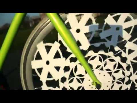 Cartoons aus Papier auf die Räder eines Fahrrads