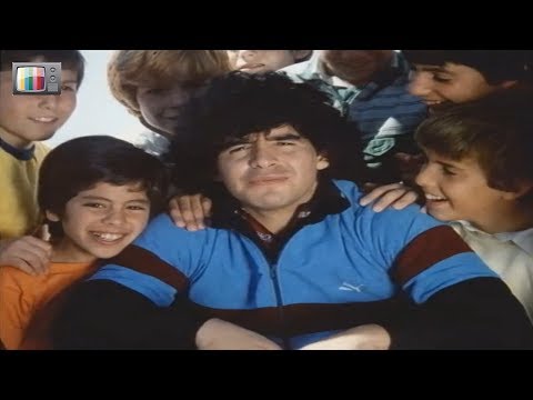 80s Anzeige von für Anti Drogen-Kampagne, mit Diego Armando Maradona 1984. Herausgegeben von TVE in Spanien.
