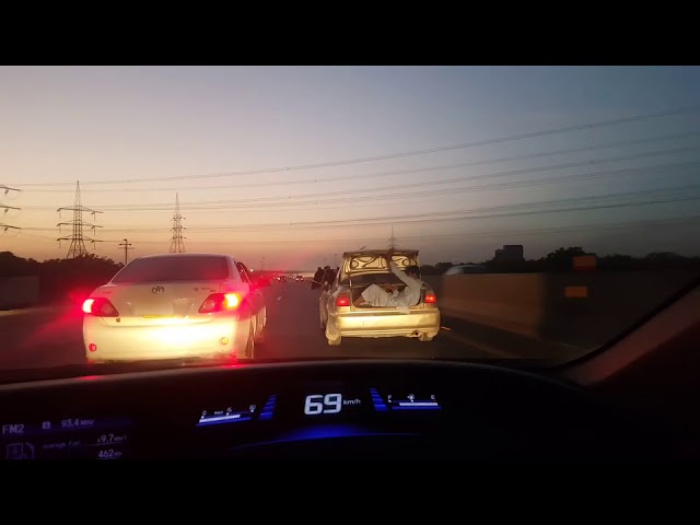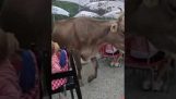 Guy Sitzt in Trunk von Auto Während Kuh Sitzt in Backseat