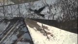 Einem Mann gelingt es, einen Schwarm Krähen von oben einzusammeln, imitiert das Krächzen einer Krähe.