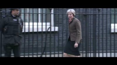 Video durchgesickert von prothymourgiko Hause von Downing Street, zeigen Theresa May mit Gesten zu Journalisten platzen. In der Tat ist dies eine Komödie Video von der britischen Produktionsfirma Studio Ja.