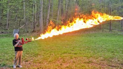 Oma benutzt Flammenwerfer