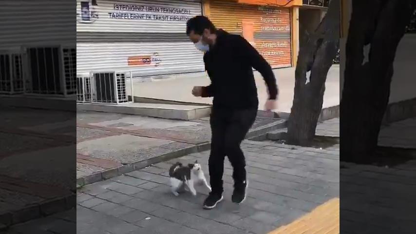 Eine Katze in Istanbul, Türkei, greift jede Person an, die an ihr vorbeigeht.