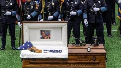 Kitt, ein Polizeihund in Massachusetts, USA, wurde im Dienst getötet, als er versuchte, einen bewaffneten Kriminellen zu immobilisieren. Am 22. Juni 2021, wurde mit Heldenehren im Gilette-Stadion begraben.