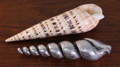 Benutzer von Robinson Foundry wirft geschmolzenes Aluminium in eine Schale, in dem Versuch, den Abdruck seiner inneren Struktur zu schaffen.