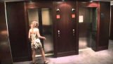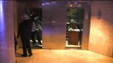 Ein Mann entkommt in letzter Minute aus einem defekten Aufzug, die plötzlich zu steigen beginnt, sobald er einsteigt.