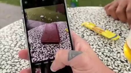 Auf der Terrasse eines Cafés, Drei Männer spielen ihrem Freund einen Streich, indem sie ihn glauben lassen, er hätte sein Telefon vergessen. Einer der Männer macht ein Foto vom Telefon des Freundes auf dem Tisch, bevor er geht. Wenn der Mann geht, Sein Freund schickt sein Handyfoto per SMS an den Tisch und teilt ihr mit, dass er es vergessen hat. Der Freund glaubt wirklich, er hätte es vergessen, Ich merkte nicht, dass er die Nachricht mit seinem Telefon gelesen hatte, und kehrt zurück, um es zu holen.