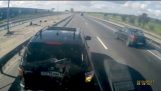 Ein Mann wollte sich mit seinem BMW X5 beschleunigen und eine Demonstration in Drift machen. Das schwere Auto traf den Bordstein und brach sich das rechte Rückenrad.