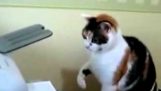 Zwei Katzen Gesicht mit großer Neugier und ein Metronom Vorsicht. Sie scheinen ihm nicht zu vertrauen..