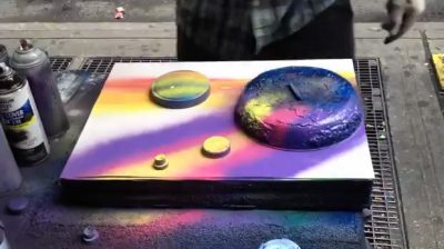 Dieser Künstler im Zentrum von New York, Es schafft sehr schöne Bilder mit Spray können Sie mit 15 US-Dollar kaufen.