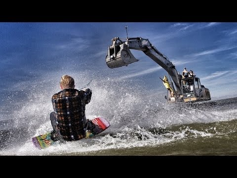 Kuh wird vor dem Ertrinken gerettet, durch den Bediener eines Baggers