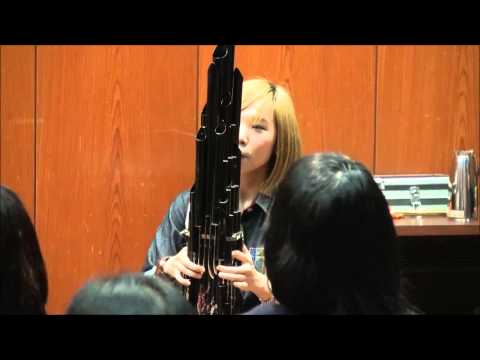Die chinesische Sheng, ist ein Wind-Musikinstrument, bestehend aus vertikalen Rohren. Es ist eines der ältesten chinesischen Musikinstrumente, mit Bildern, die ab 1100 vor Christus datiert DEPICT. Hier spielt der Musiker Li Jin Li seine Musik-Videospiel 'Super Mario' in der National Concert Hall in Taipei, Taiwan.