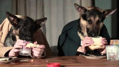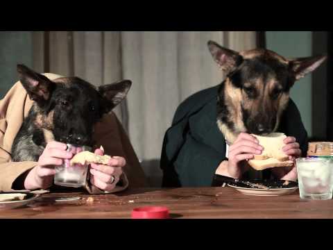 Die gut erzogene Odin versucht der Welpe mit Pippin Essen.