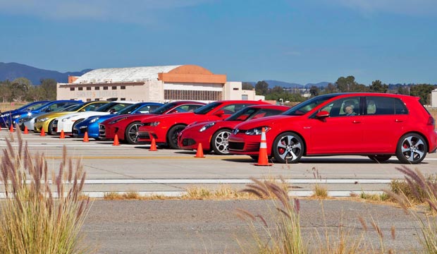 Das standard jährliche Drag-Rennen der MotorTrend Sendung mit einigen der schnellere Autos des Jahres, in einer geraden 400m. Alfa Romeo 4C, BMW i8, BMW-M4, Chevrolet CamaroZ / 28, Ford Fiesta ST, Jaguar C-Type R Coupe, Nissan GT-R Nismo Porsche 911 Turbo S, Subaru WRX STI und VW Golf GTI.