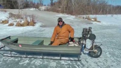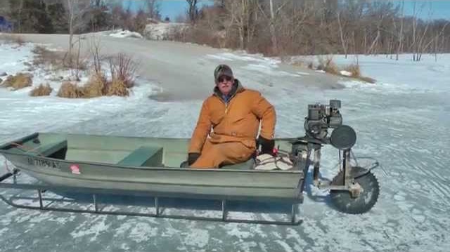 Der Fischer, die, den goyil Clayton eine innovative Boot gebaut, kann in den eisigen Gewässern verschoben werden, über. Für den Bau verwendeten Metallrohre und große Öl sah.