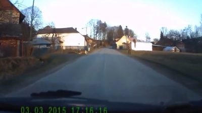 Ein Autofahrer in der Tschechischen Republik werden eine sehr lustige Szene Zeugen.. Ein Hund überquert die Straße und zieht mit der Leine hinter ihm einen kleiner Junge.
