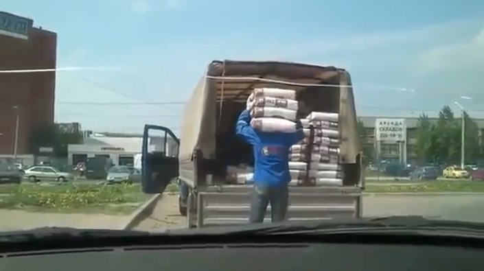 Beachten Sie, dass der Arbeitnehmer. Die Zementsäcke wir wiegen zwischen 25 und 35 Pfund je, also herausfinden Sie, welche Last auf seinen Schultern tragen.