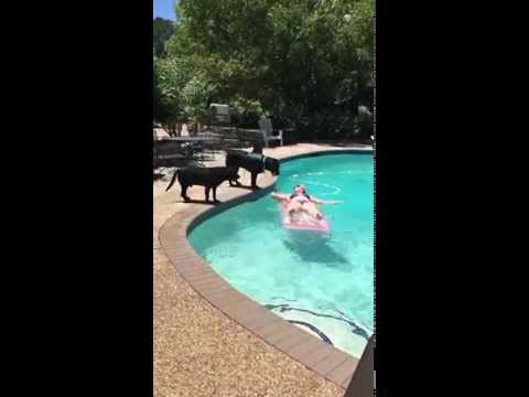 Dies ist Jett. Er ist ein 9 Monate altes schwarzes Labor, das zu viel Shark Week / Shark Fest gesehen hat.