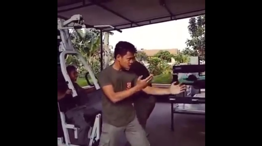 Ein indonesischer Polizist aus dem Körper Gegana, ein Anti-Terror-Polizeieinheit, in der Kampfkunst gegen einen Holzpfahl trainiert. Aber es fand eine sehr schwierige Situation, wenn der Pol zurückschlägt. Zum Glück, Sie können auf das Team verlassen, das direkt rauscht speichern.