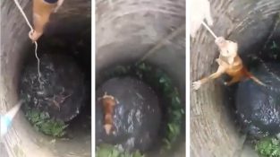 Zwei Männer in Thailand mit einem Seil in dem Versuch, um einen verängstigten Hund zu retten, die in den Brunnen fiel. Der Hund würde das Seil mehrmals mit seinem Mund greifen., aber nicht kann [...]