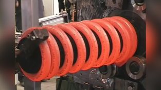 Der Bau des großen Durchmessers Federn in einer Fabrik. Die Federn werden im Maschinenbau verwendet werden, Werkzeugmaschinen-Industrie, die Öl-Industrie und andere Industriezweige.