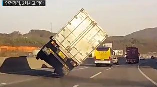 Ein LKW-Fahrer in Südkorea verliert die Kontrolle über sein Fahrzeug für einige Sekunden, und macht unwissentlich einen spektakulären akrobatischen.