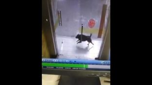 Ein Hund, eine Katze zu jagen, aber er wird die Glastür vor sich nicht bemerken ... Die Überwachungskamera des Ladens enthüllt die Ursachen der Katastrophe.