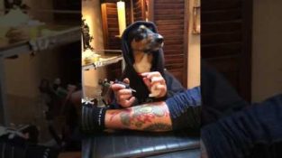Ein erfahrener Hund Künstler tätowieren, bei der Arbeit.