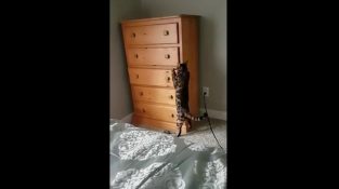 die Loki, eine Bengal-Katze, Es zeigt uns das einzigartige Talent des Versteckens, so kann sie eine Schublade geöffnet, durchrutschen und schließen Sie es dann.