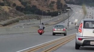 Am Mittwoch, 21. Juni 2017 auf einer Autobahn in der Nähe von Santa Clarita, Kalifornien, der Konflikt zwischen einem Motorradfahrer und einem Autofahrer verursachte einen Unfall zwischen zwei Autos. Der Fahrer schließt den Weg für Motorradfahrer, [...]