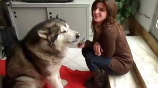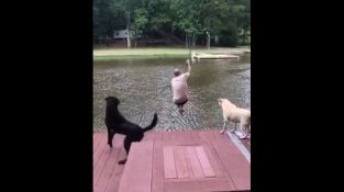 Hunde laufen ihren Chef zu retten