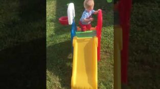 Statt des Abrutschens, das Kind springt auf die Rampe